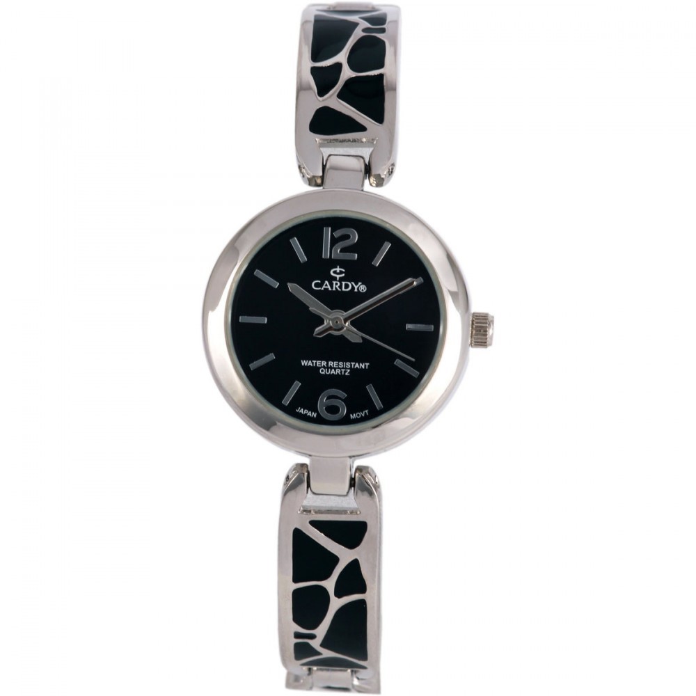 Cardy női karóra, ezüst színű fémtok, ezüst / fekete színű fémcsat, fekete színű számlap, quartz szerkezet, cseppmentes vízállóság