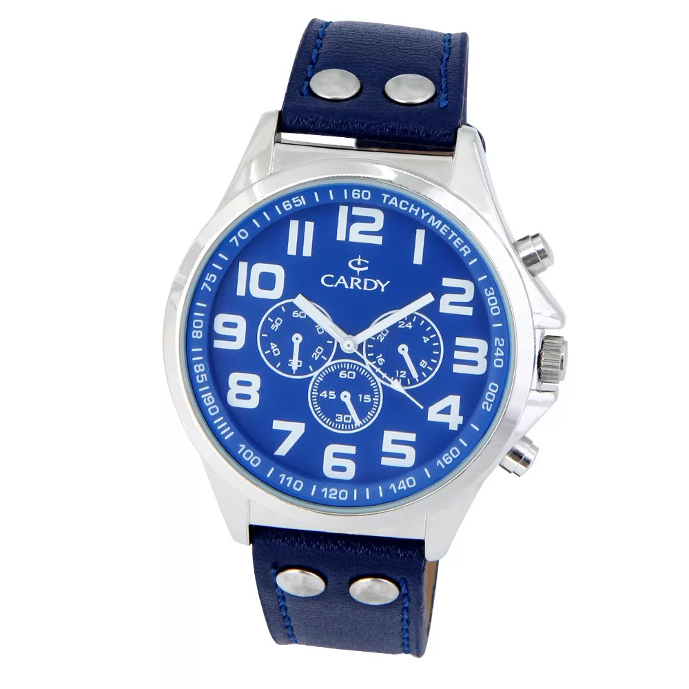 Cardy férfi karóra, ezüst színű fém tok, kék színű szíj, kék színű számlap, quartz szerkezet, cseppmentes