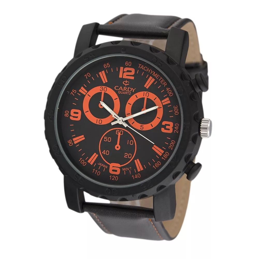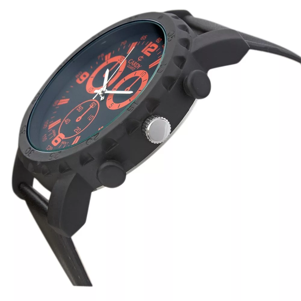 Cardy férfi karóra, fekete színű fémtok, fekete szíj, fekete számlap, quartz szerkezet, cseppmentes vízállóság