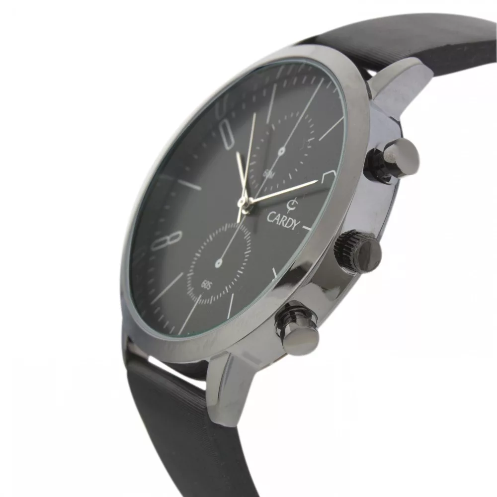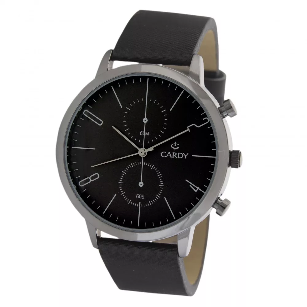 Cardy férfi karóra, sötétszürke színű fémtok, fekete színű szíj, szürke színű számlap, quartz szerkezet, cseppmentes vízállóság