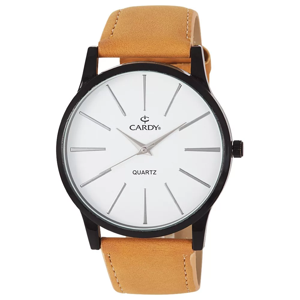 Cardy férfi karóra, fekete színű fémtok, barna színű szíj, fehér számlap, quartz szerkezet, cseppmentes vízállóság
