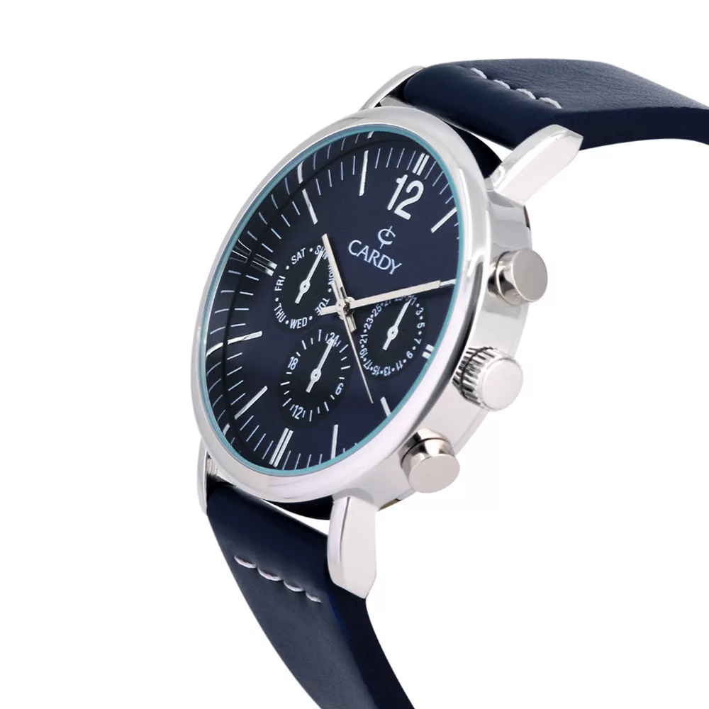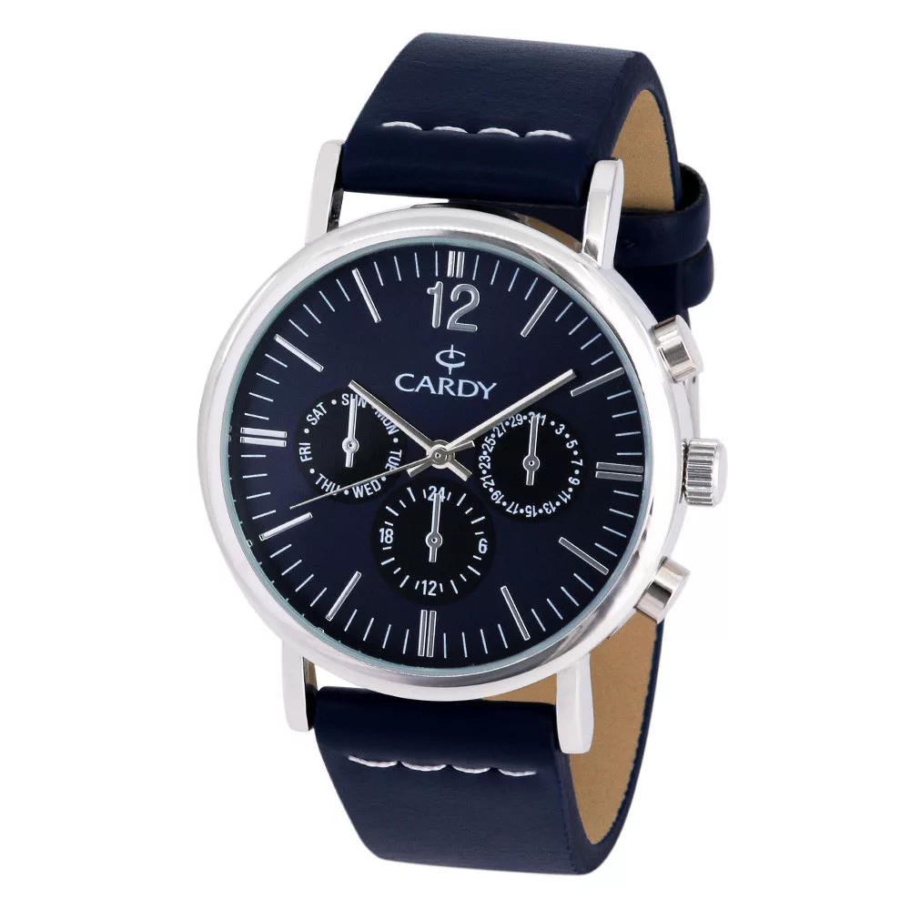 Cardy férfi szíjas karóra, quartz, ezüst színű tok, kék színű szíj, kék színű számlap