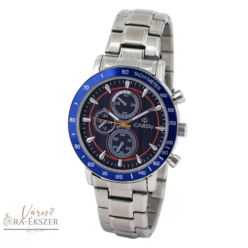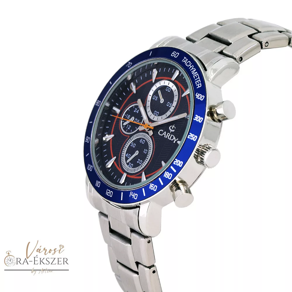 Cardy férfi karóra, quartz, ezüst színű fémtok, ezüst színű fém karcsat, kék színű számlap, cseppmentes vízállóság