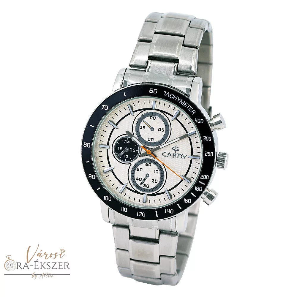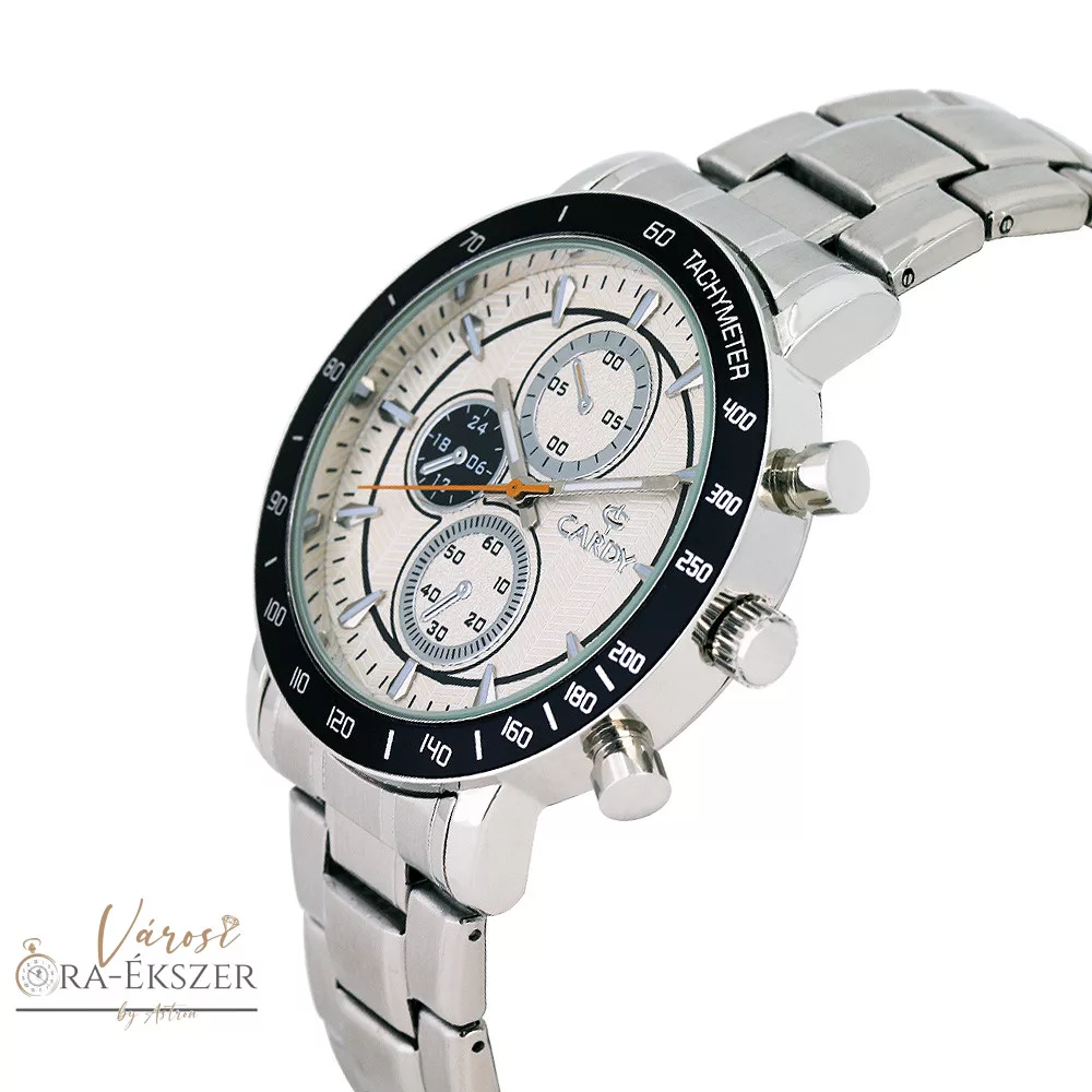 Cardy férfi karóra, quartz, ezüst színű fémtok, ezüst színű fém karcsat, fehér színű számlap, cseppmentes vízállóság