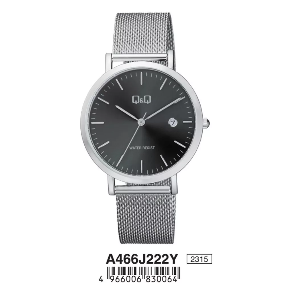 Q&Q férfi fémcsatos karóra, ezüst színű tok, ezüst színű szíj, fekete számlap, A466J222Y