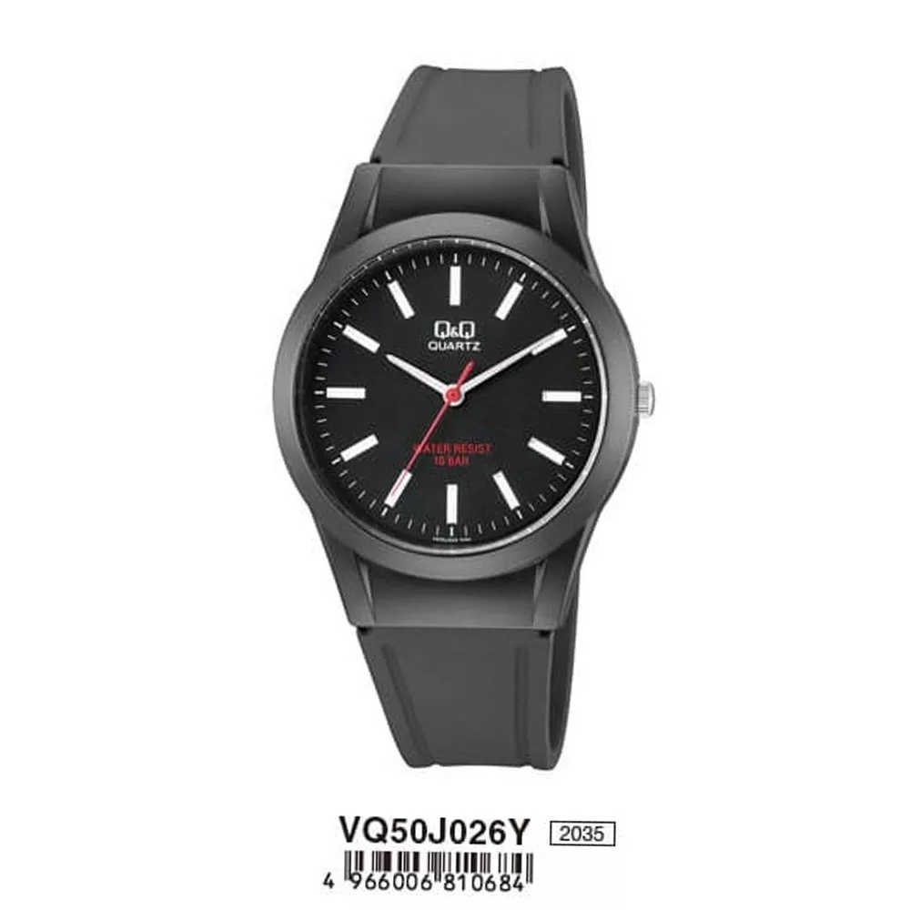 Q&Q férfi műanyag szíjas karóra, fekete színű tok és szíj, fekete színű számlap, VQ50J026Y