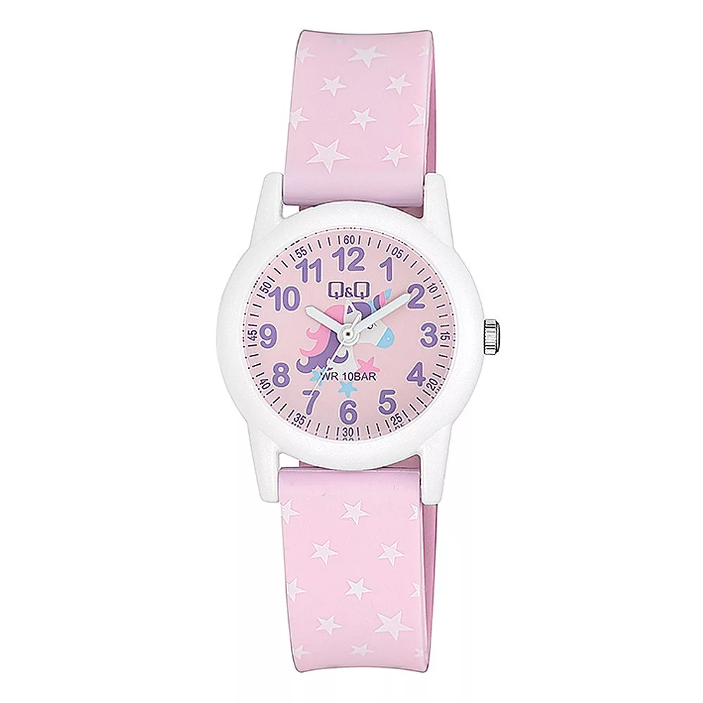 Q&Q gyerek karóra, fehér színű tok, rózsaszín figurás szíj, figurás számlap, VR99J013Y