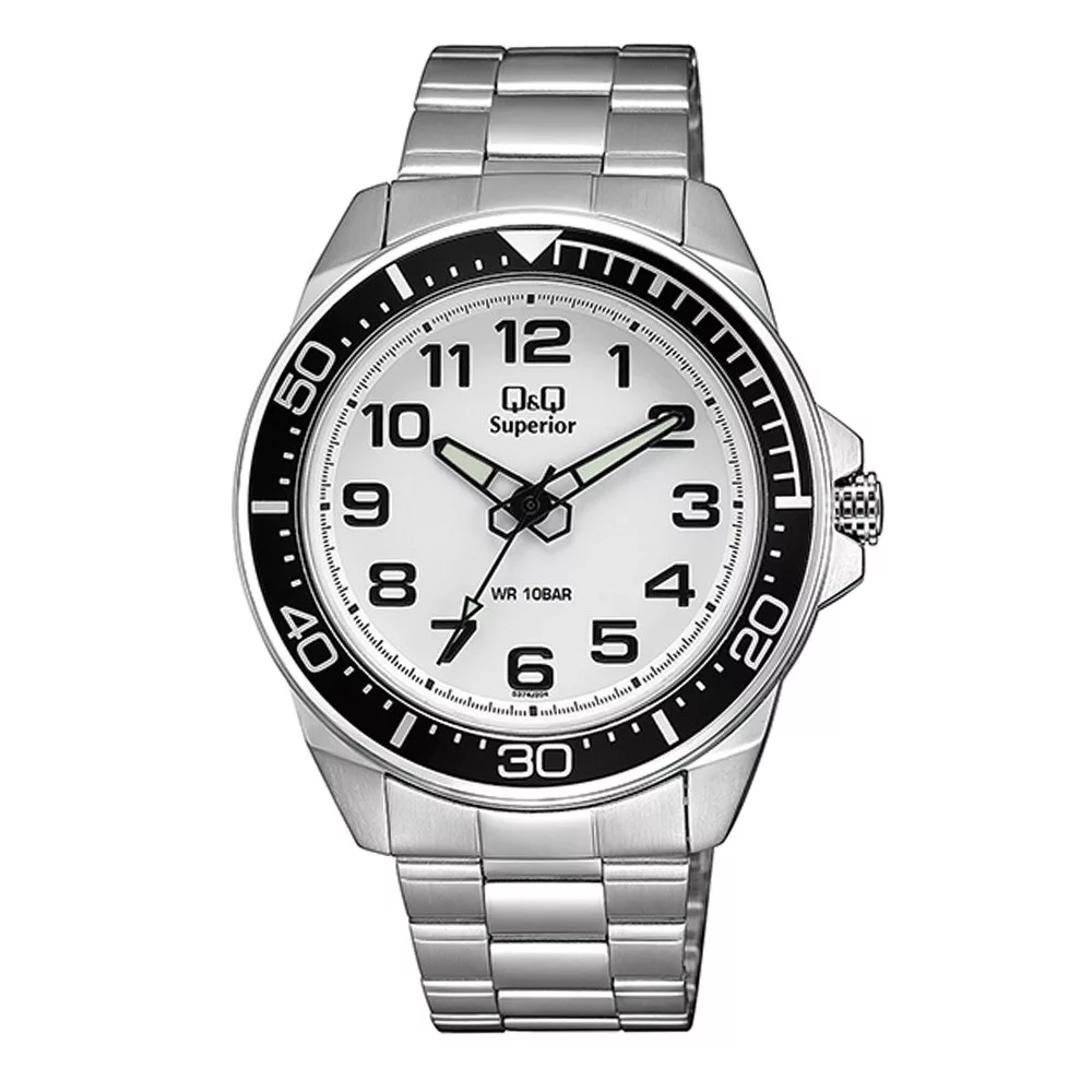 Q&Q férfi karóra, quartz, ezüst színű tok, ezüst színű karcsat, fehér számlap, (Superior) S374J204Y