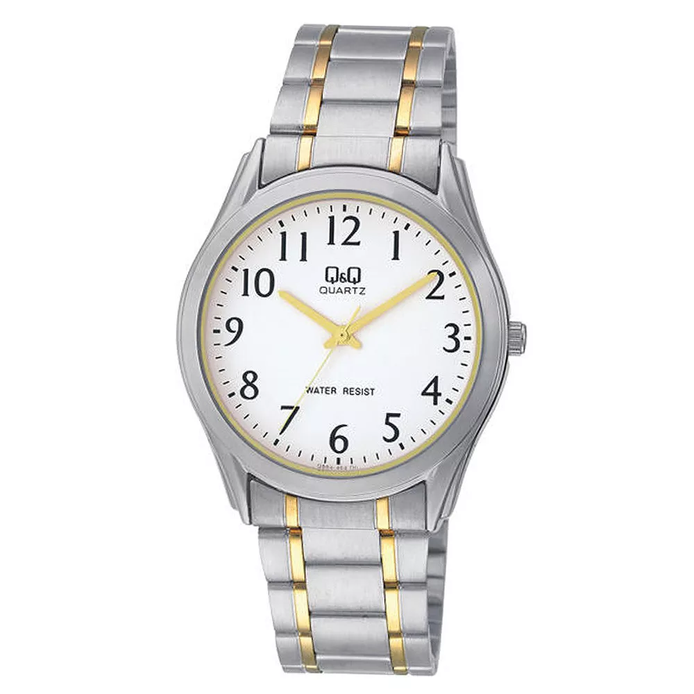 Q&Q férfi karóra, quartz, ezüst színű fémtok, bicolor színű acél karcsat, fehér színű számlap, Q594J404Y
