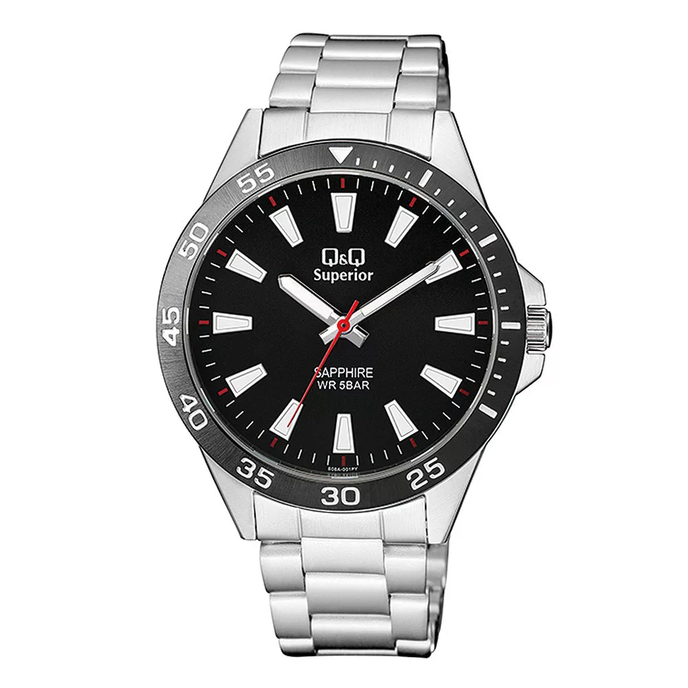 Q&Q férfi karóra, quartz, ezüst színű acél tok, ezüst színű acél karcsat, fekete számlap, (Superior) S08A-001PY