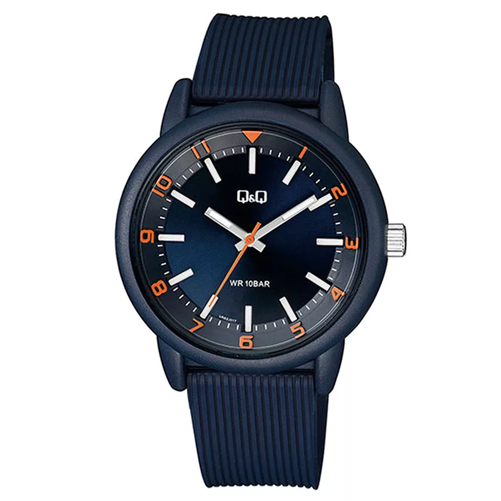 Q&Q férfi karóra, quartz, kék színű műanyag tok, kék színű műanyag szíj, kék színű számlap, VR52J017Y