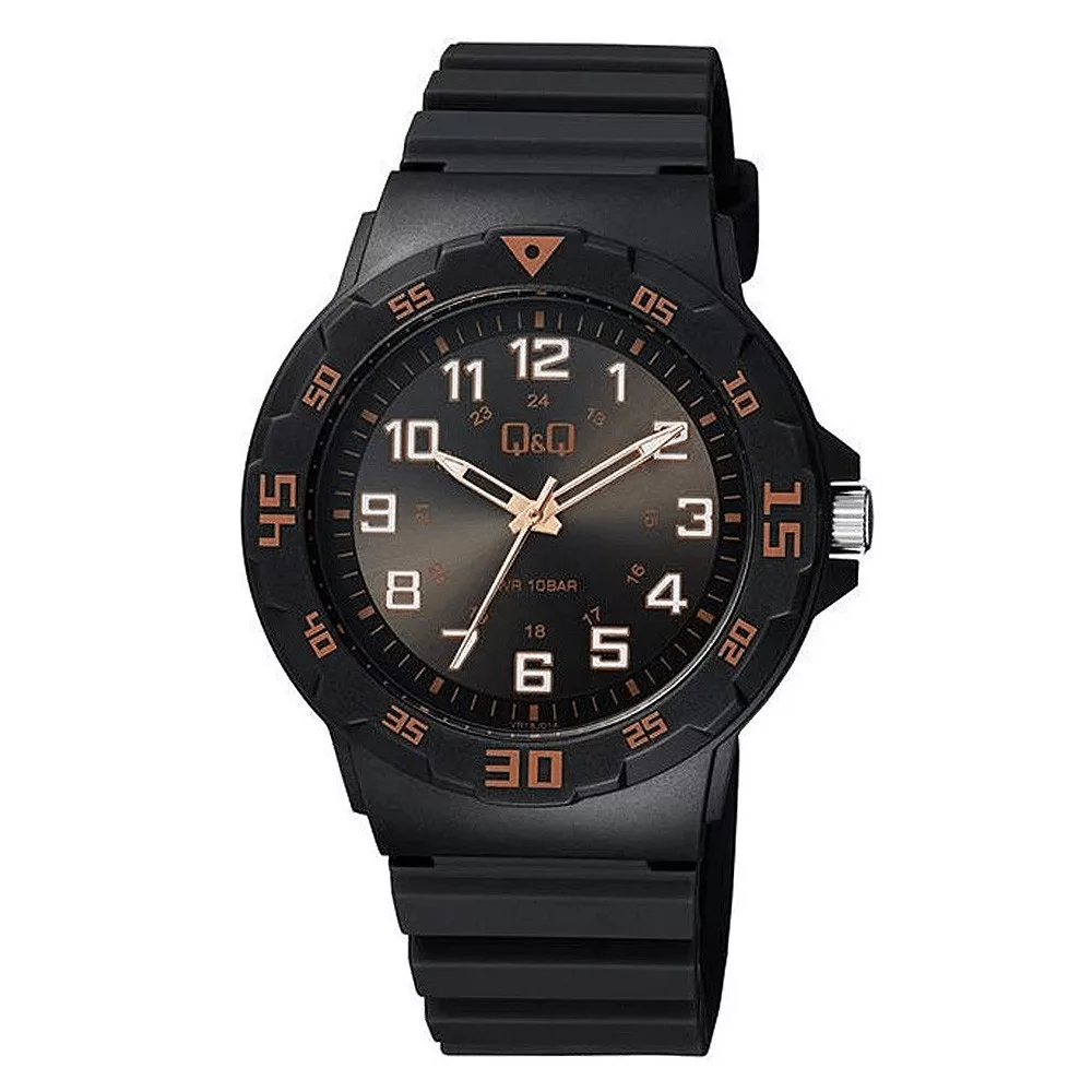 Q&Q férfi karóra, quartz, fekete színű műanyag tok, szürke színű számlap, fekete színű műanyag szíj, VR18J014Y