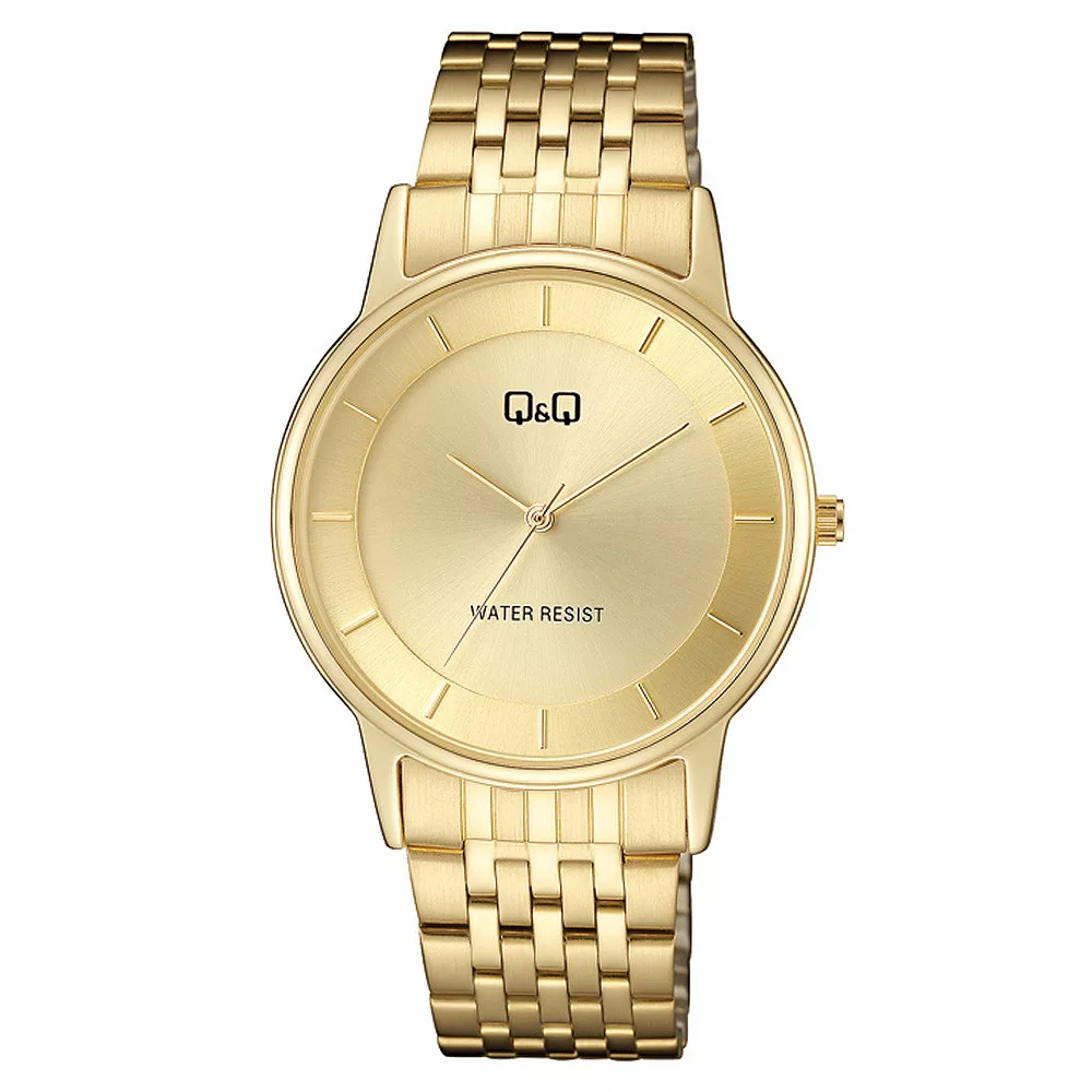 Q&Q férfi karóra, quartz, arany színű fémtok, pezsgő színű számlap, arany színű acél karcsat, C62A-003PY