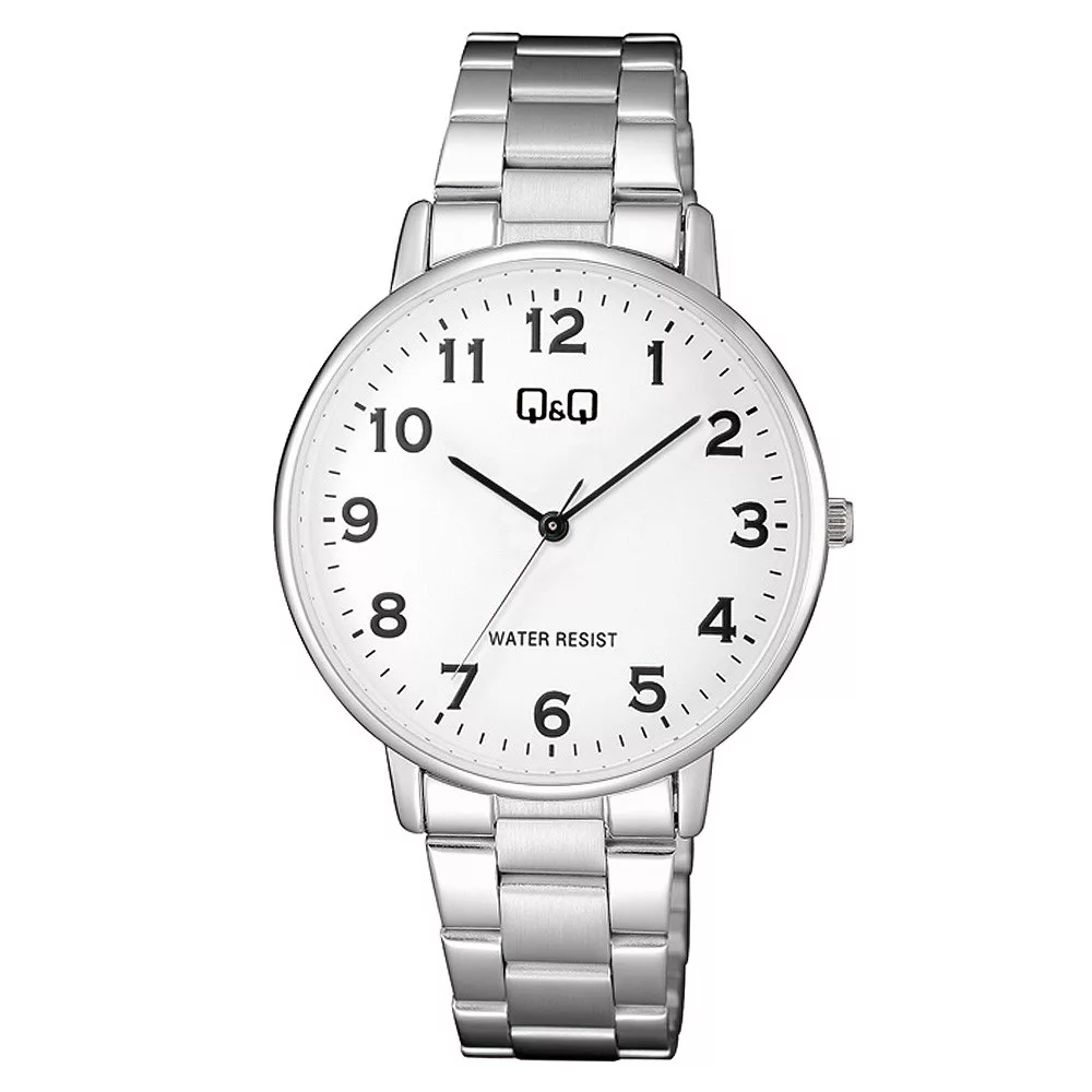 Q&Q férfi karóra, quartz, ezüst színű fémtok, fehér színű számlap, ezüst színű acél karcsat, C64A-002PY