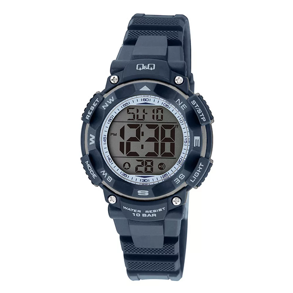 Q&Q férfi digitális karóra, quartz, kék színű műanyag tok, LCD kijelzés, kék színű műanyag szíj, M149J007Y