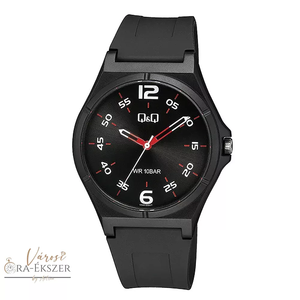Q&Q férfi karóra, quartz, fekete színű műanyag szíj, fekete színű műanyag tok, fekete színű arab számos számlap, V04A-005VY