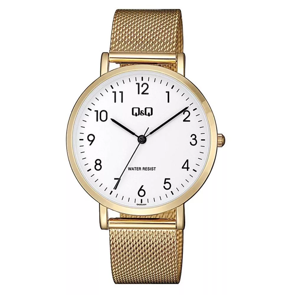 Q&Q férfi fémcsatos karóra, quartz, arany színű tok és csat, fehér számlap, QA20J054Y