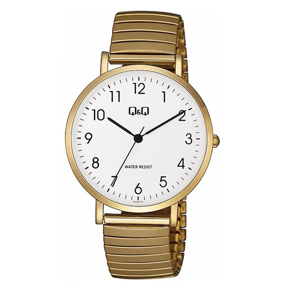 Q&Q férfi rugóscsatos karóra, quartz, arany színű tok és csat, fehér számlap, QA20J034Y