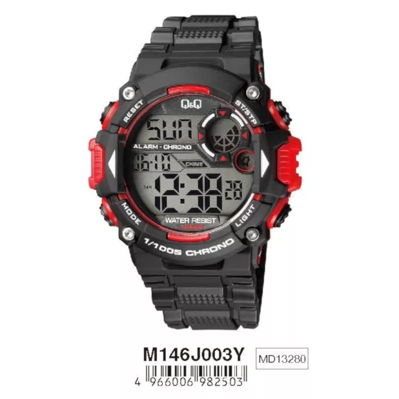 Q&Q férfi műanyag karóra, quartz, LCD kijelzés, fekete színű műanyag tok, fekete színű műanyag szíj, M146J003Y