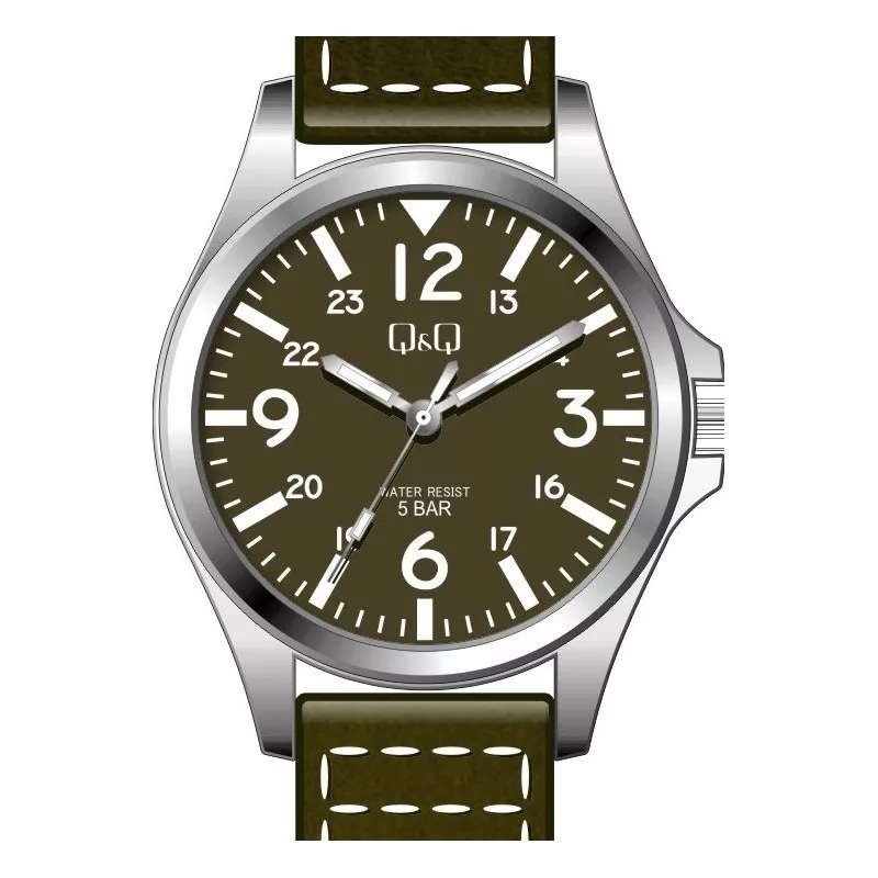 Q&Q férfi szíjas quartz karóra, ezüst színű tok, barna szíj, barna számlap, QB12J345Y