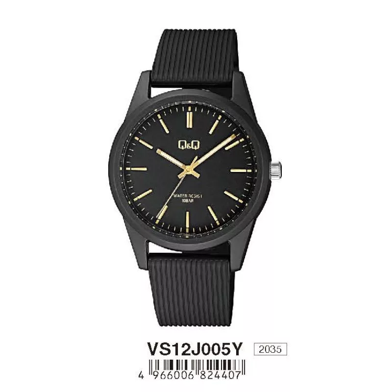 Q&Q férfi quartz karóra, fekete színű műanyag tok és szíj, fekete számlap, VS12J005Y