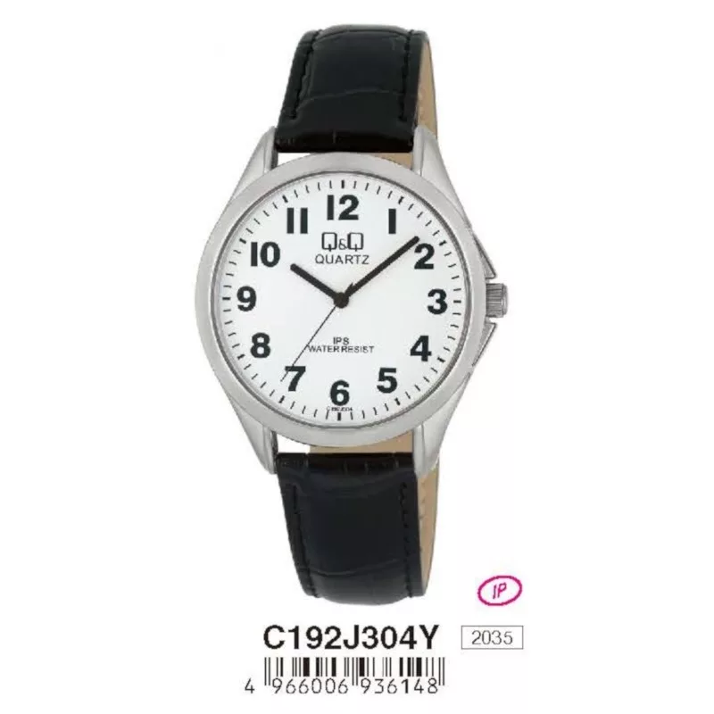 Q&Q férfi karóra, quartz, ezüst színű fémtok, fekete bőrszíj, fehér arab számos számlap, C192J304Y