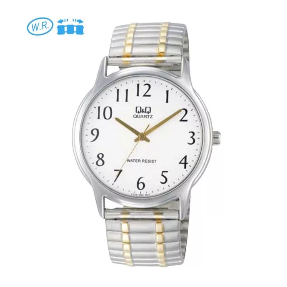 Q&Q férfi karóra, quartz, ezüst színű fémtok, bicolor színű rugóscsatos acél karcsat, arab számos fehér számlap, VY24J404Y