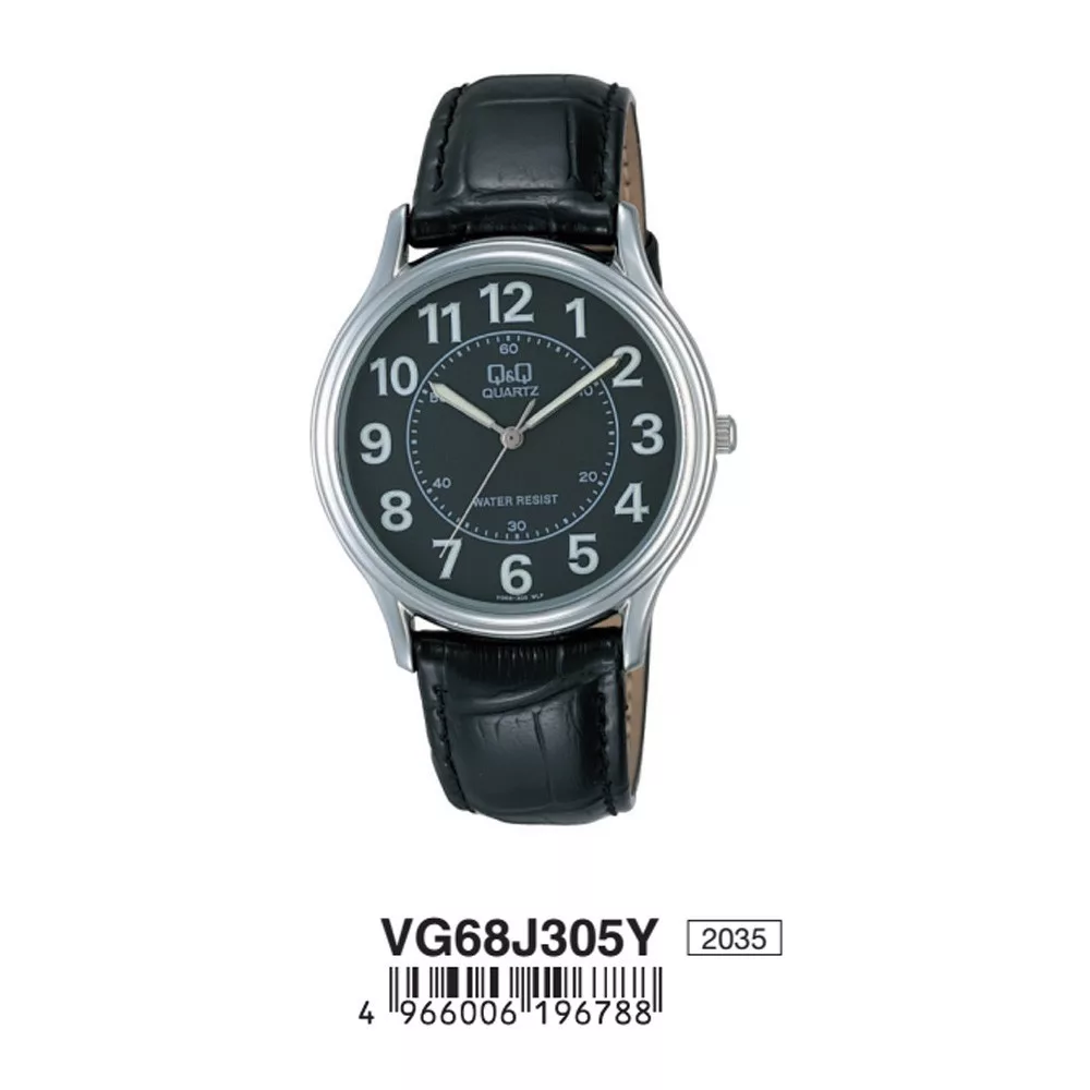 Q&Q férfi fekete szíjas karóra,quartz,ezüst színű tok, fekete számlap, VG68J305Y