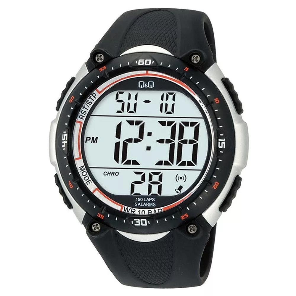 Q&Q férfi karóra, quartz, digitális, LCD kijelzés, fekete színű műanyag tok, fekete színű műanyag szíj, M010J002Y