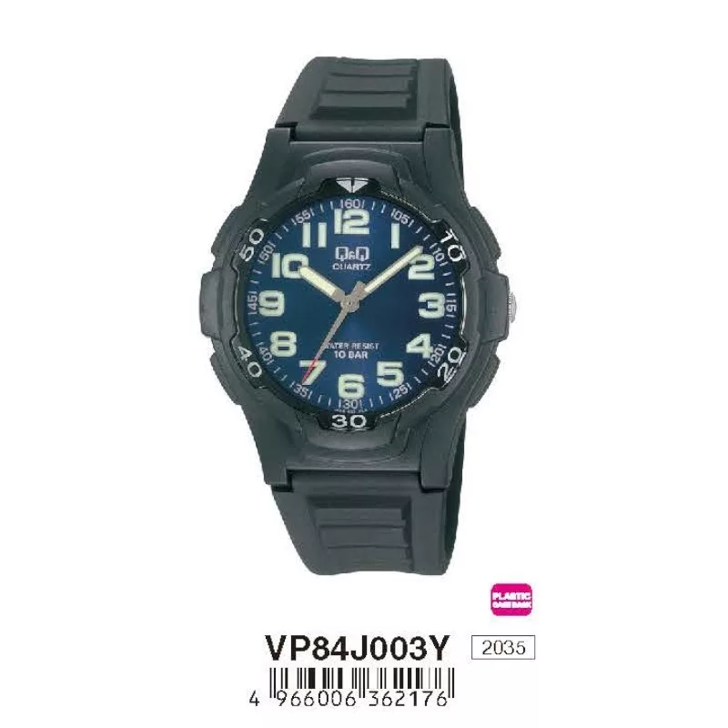Q&Q férfi műanyag karóra, quartz, fekete színű, műanyag hátlap, VP84J003Y