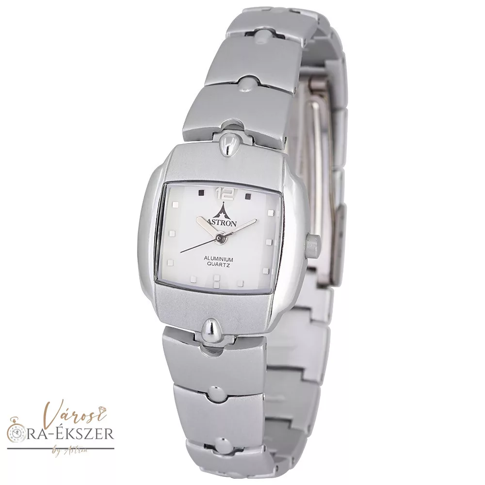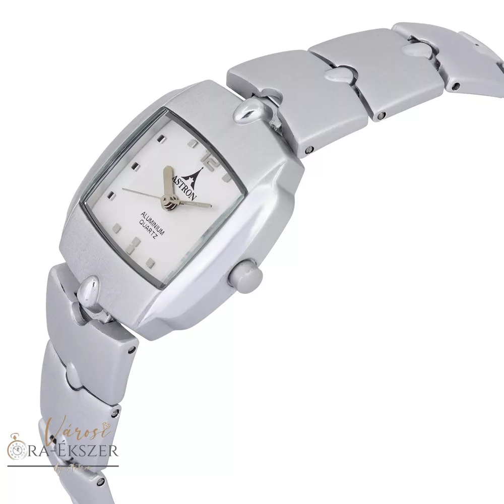 ASTRON 5260-7 divatos női karóra, ezüst színű alumínium tok, ezüst színű alumínium csat, arab számos fehér számlap, keményített ásványüveg, quartz szerkezet, cseppmentes vízállóság