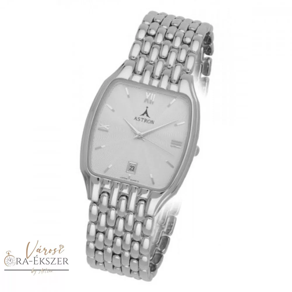ASTRON 5423-7 férfi karóra, ezüst színű nemesacél tok, ezüst színű nemesacél csat, római számos fehér számlap, keményített ásványüveg, quartz szerkezet, cseppmentes vízállóság