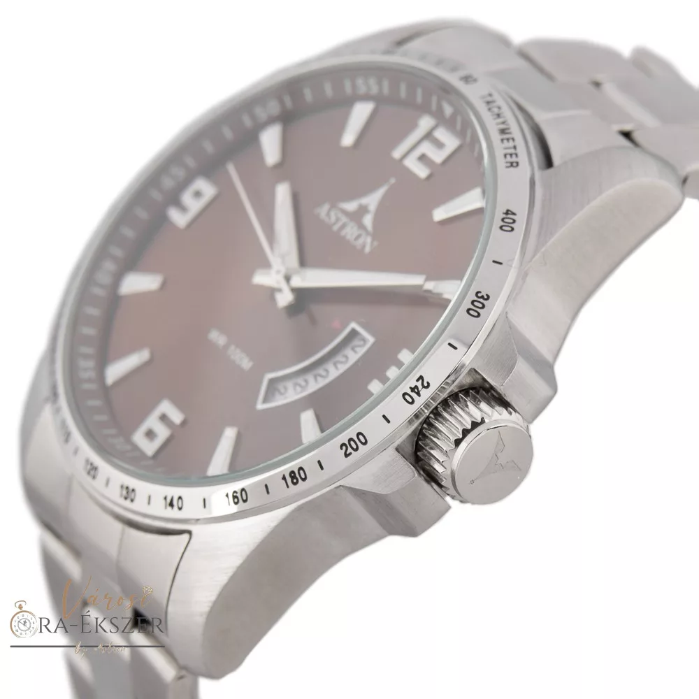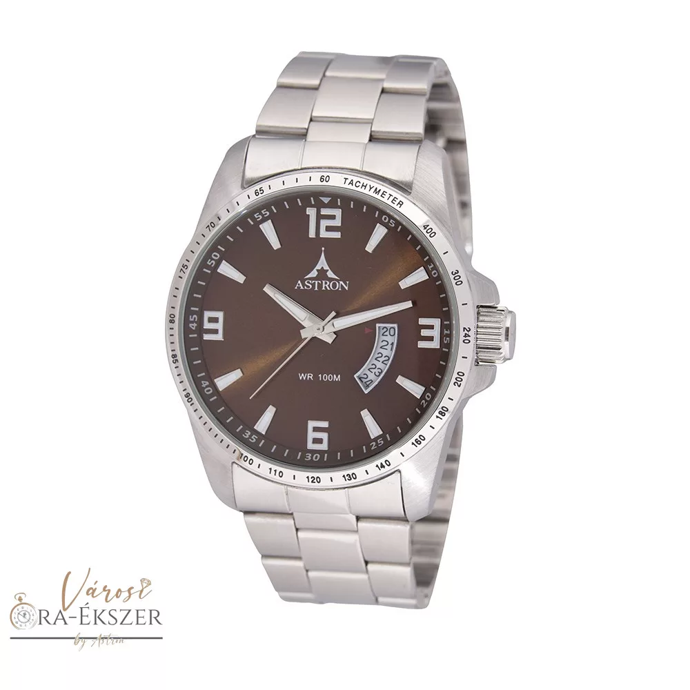 ASTRON 5517-5 férfi karóra, ezüst színű nemesacél tok, ezüst színű nemesacél csat, barna számlap, keményített ásványüveg, quartz szerkezet, 100 m (10 ATM) vízállóság