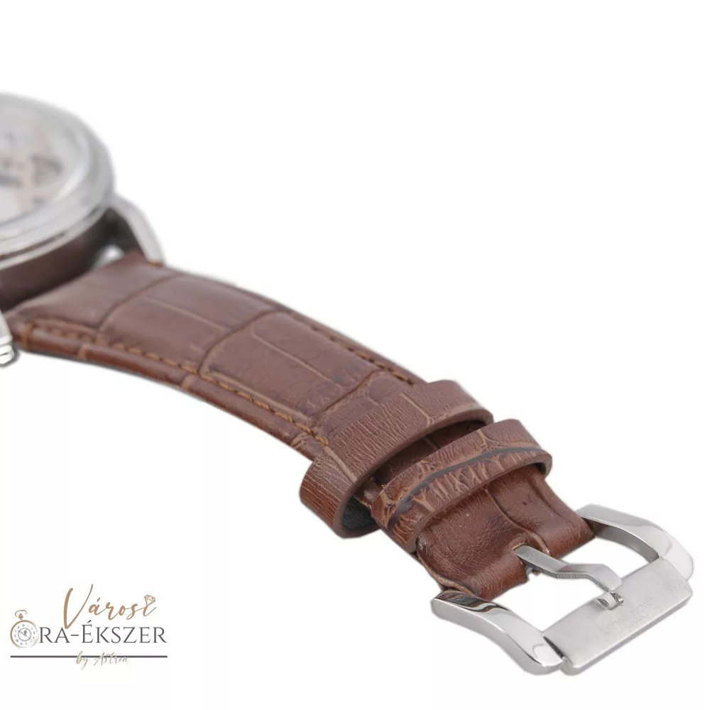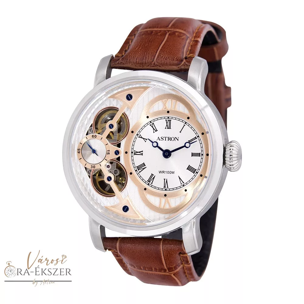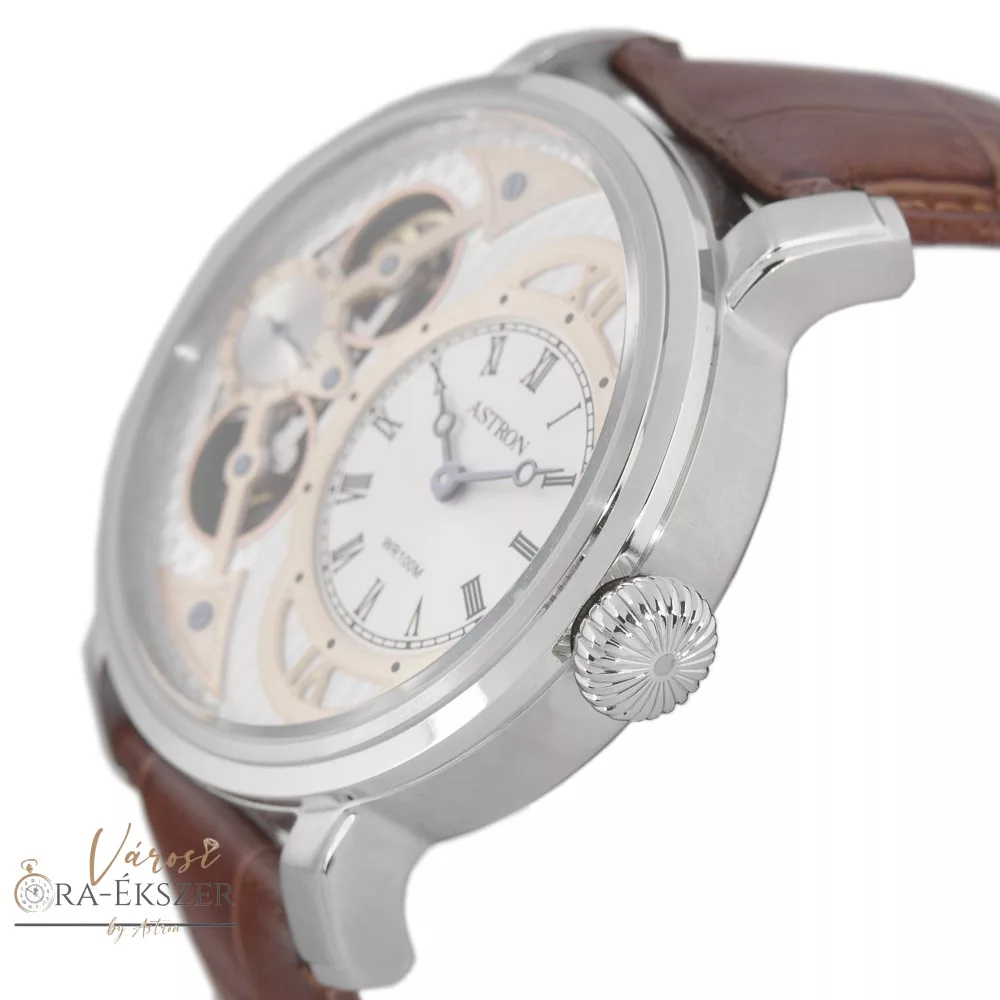 ASTRON 5522-8 férfi karóra, ezüst színű nemesacél tok, barna bőrszíj, ezüst színű számlap, keményített ásványüveg, HIBRID (mechanikus+quartz) szerkezet, 100 m (10 ATM) vízállóság