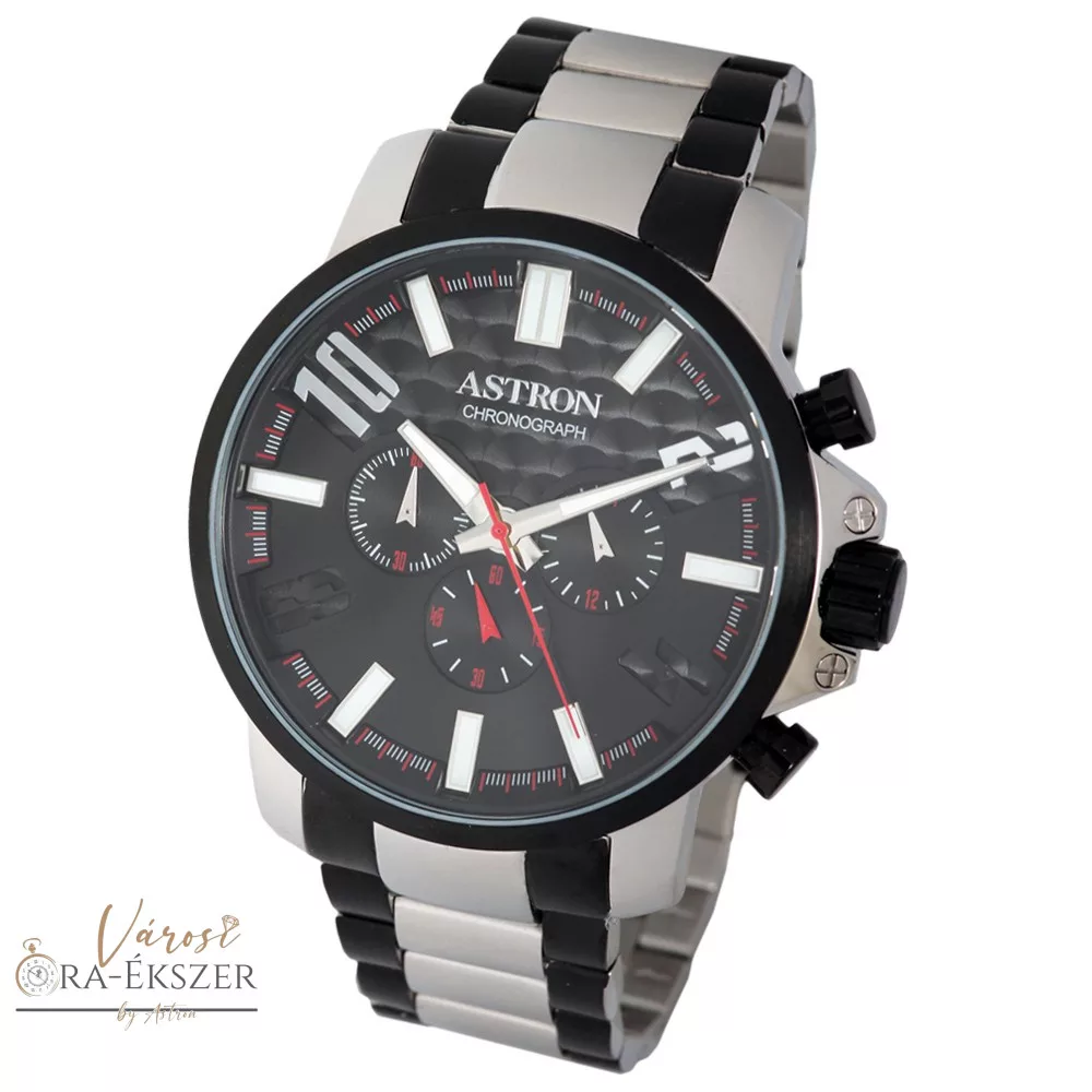 ASTRON 5531-1 férfi karóra, bicolor színű nemesacél tok, bicolor nemesacél csat, fekete számlap, keményített ásványüveg, chronograph quartz szerkezet, 50 m (5 ATM) vízállóság