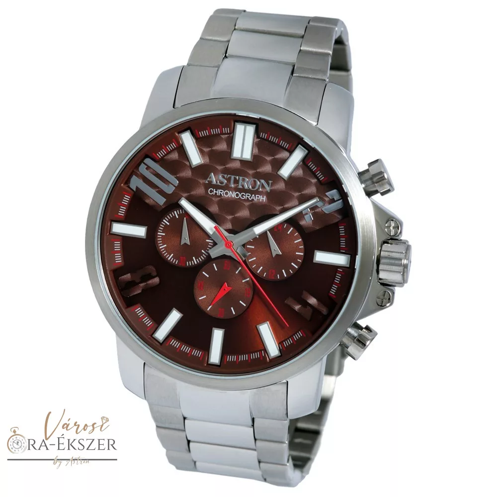 ASTRON 5531-6 férfi karóra, chronograph, ezüst színű nemesacél tok, ezüst színű nemesacél csat, barna számlap, keményített ásványüveg, quartz szerkezet, 50 m (5 ATM) vízállóság