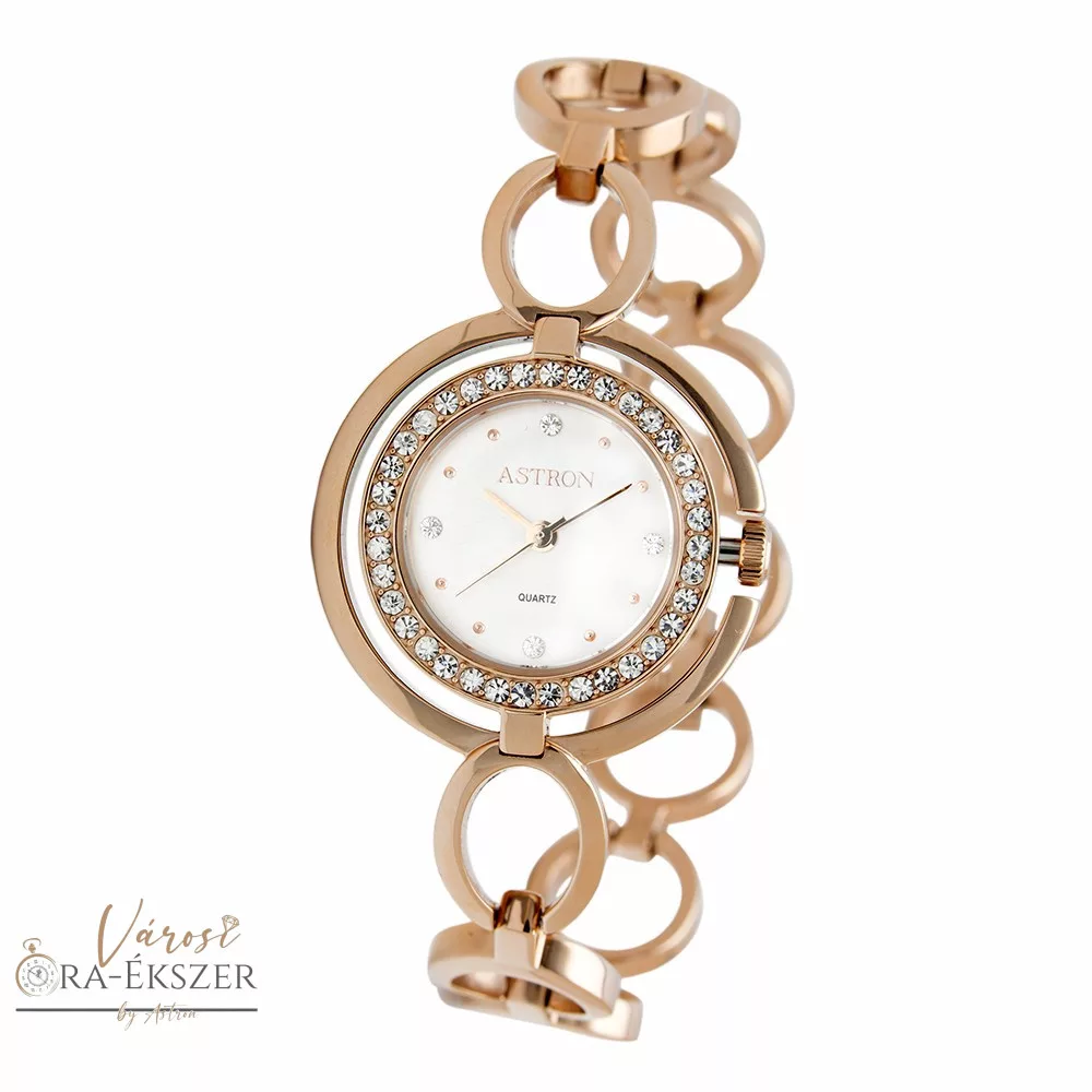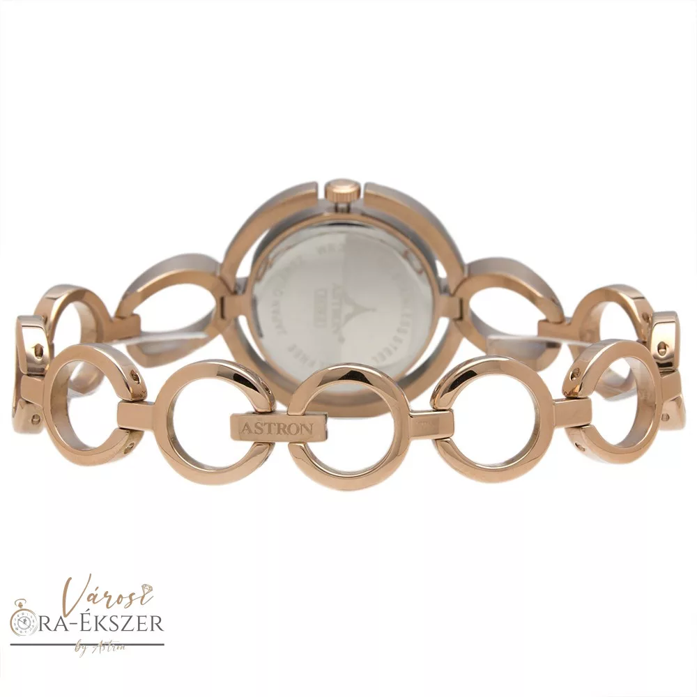ASTRON 5539-0 női karóra, rózsaarany színű nemesacél tok, rózsaarany színű nemesacél csat, ezüst színű számlap, keményített ásványüveg, quartz szerkezet, cseppmentes vízállóság