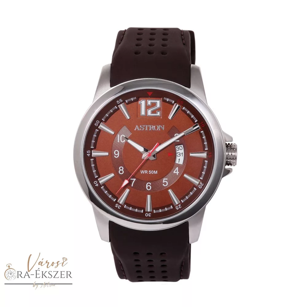 ASTRON 5555-5 férfi karóra, ezüst színű nemesacél tok, barna szilikon szíj, barna számlap, keményített ásványüveg, quartz szerkezet, 50 m (5 ATM) vízállóság
