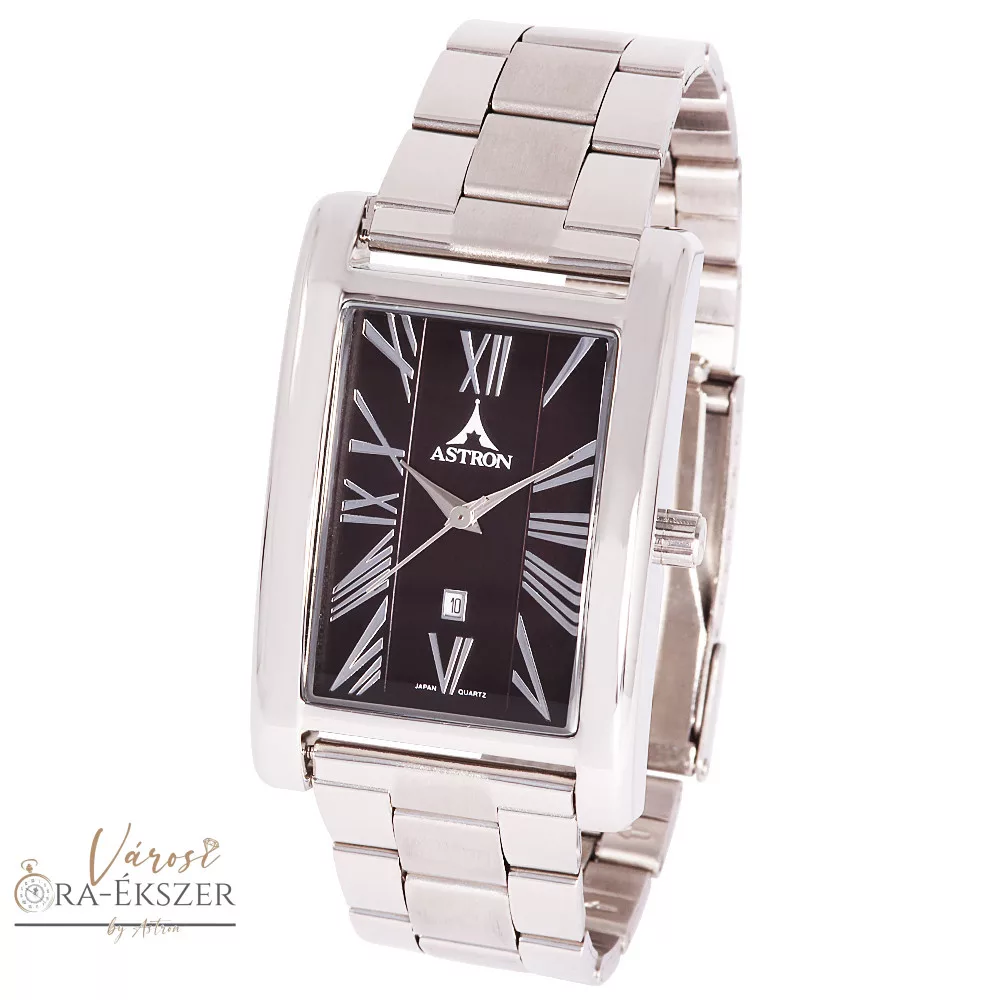 ASTRON 5569-1 férfi karóra, ezüst színű nemesacél tok, ezüst színű nemesacél csat, fekete számlap, keményített ásványüveg, quartz szerkezet, cseppmentes vízállóság