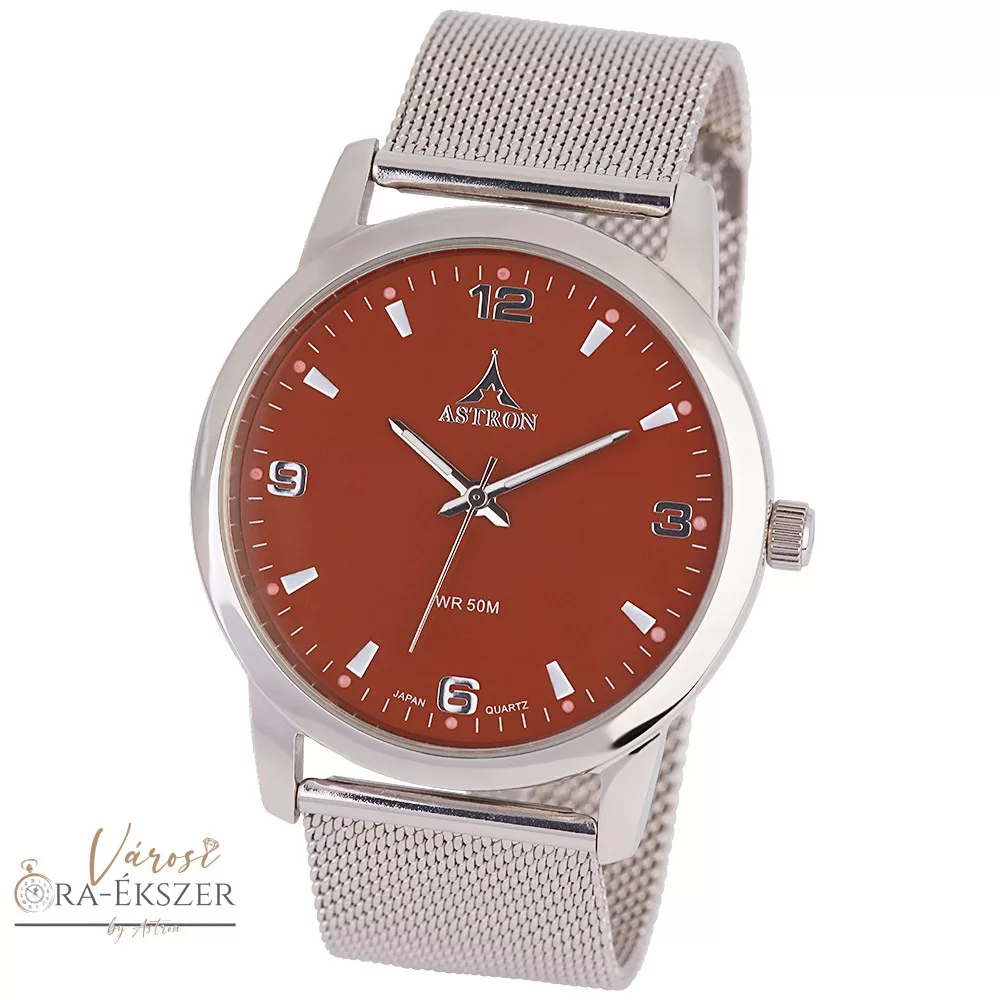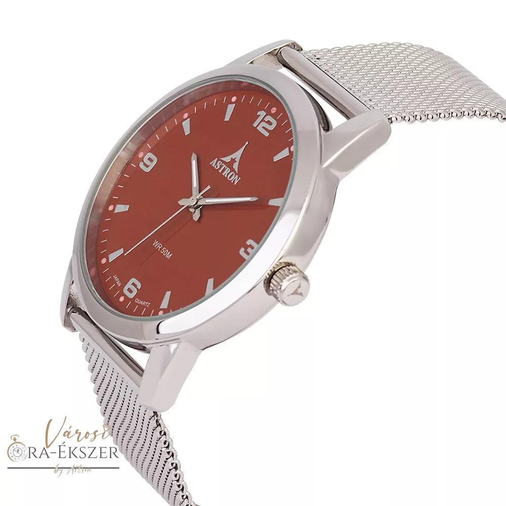 ASTRON 5631-5 elegáns férfi karóra, ezüst színű nemesacél tok, ezüst színű nemesacél csat, arab számos barna számlap, keményített ásványüveg, quartz szerkezet, 50 m (5 ATM) vízállóság