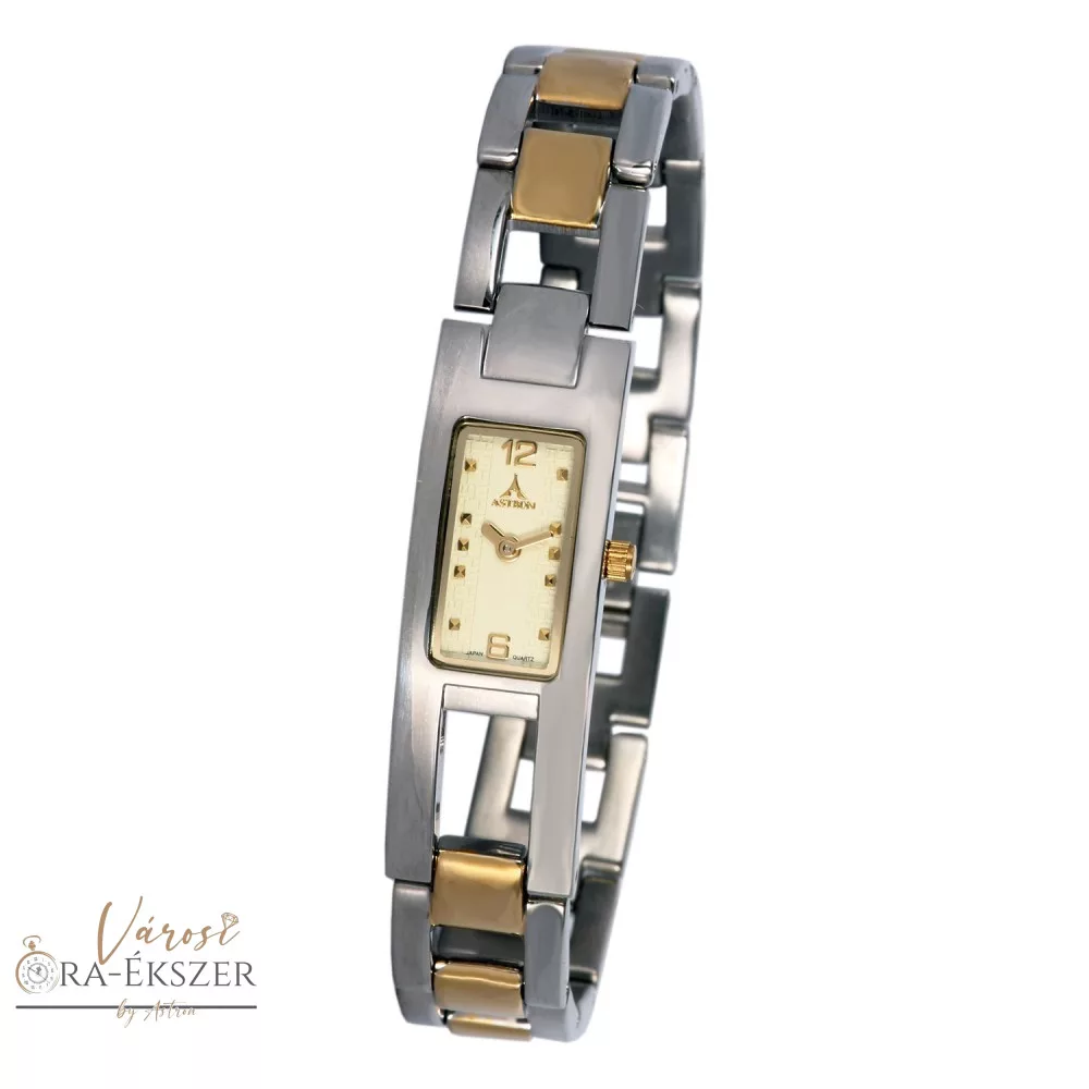 ASTRON 5740-9 női karóra, ezüst színű nemesacél tok, bicolor nemesacél csat, pezsgőszínű számlap, keményített ásványüveg, quartz szerkezet, cseppmentes vízállóság