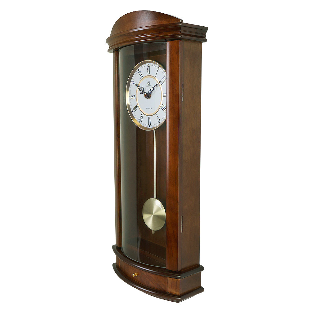 Merion ingás fa falióra, quartz, hangjelzés nélküli, dió színű tok, fehér színű római számos számlap, domború üveges