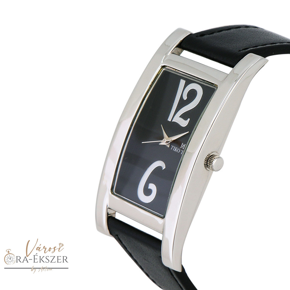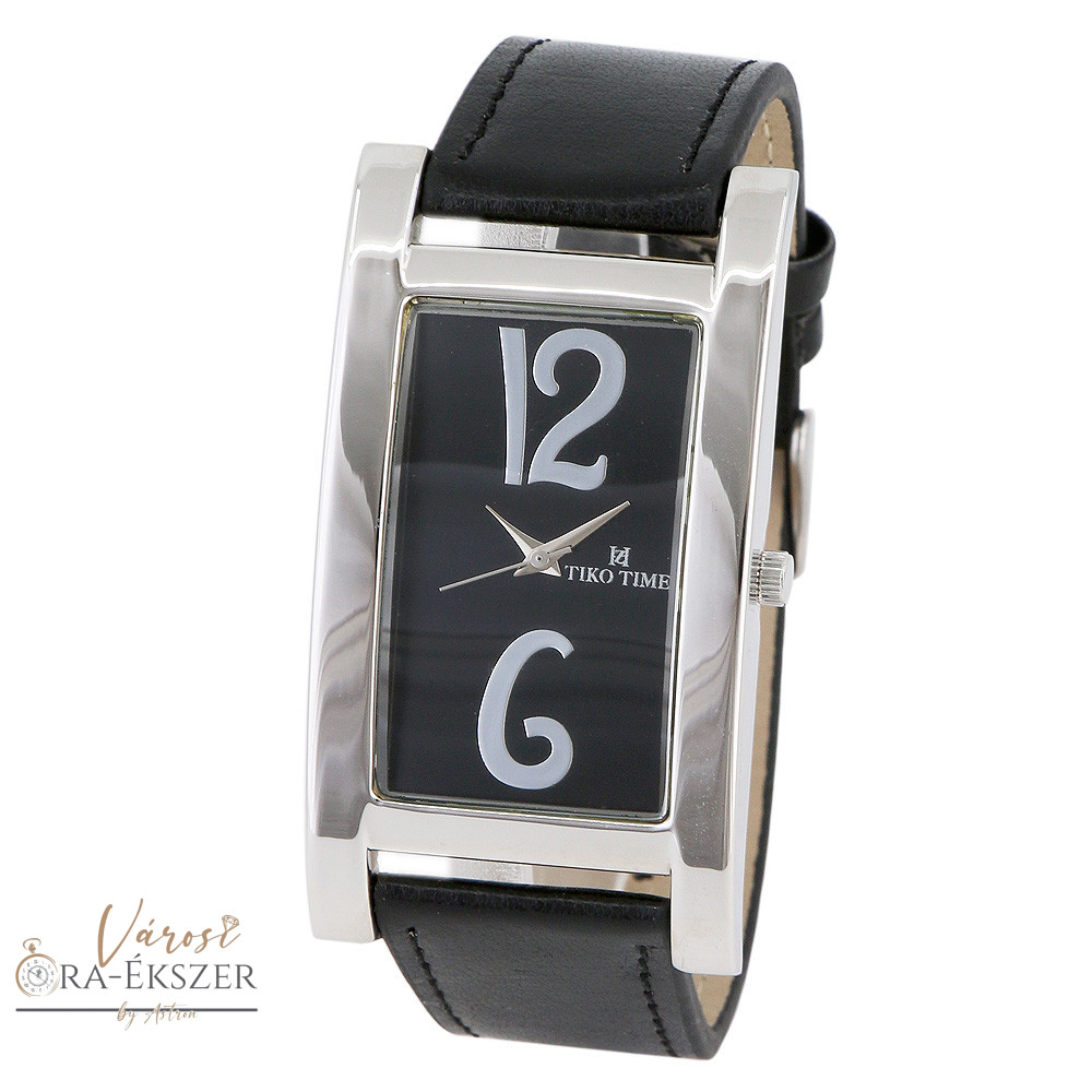 Tiko Time női karóra, quartz, ezüst színű fémtok, fekete színű bőrszíj, fekete színű számlap