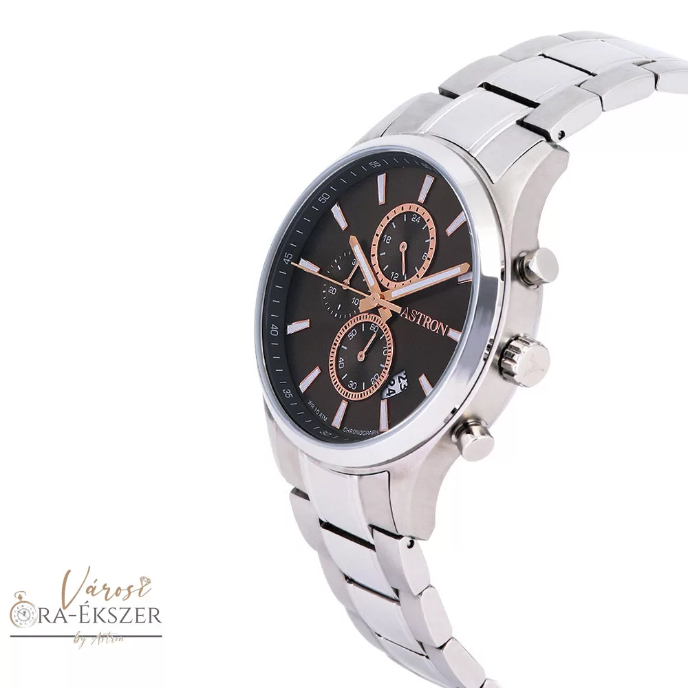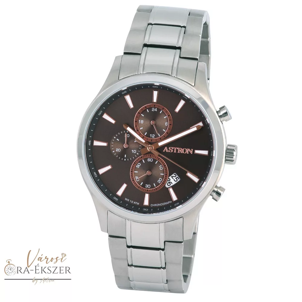 ASTRON 8040-5 férfi karóra, chronograph, ezüst színű nemesacél tok és csat, szürke számlap, keményített ásványüveg, quartz szerkezet, 100 m (10 ATM) vízállóság