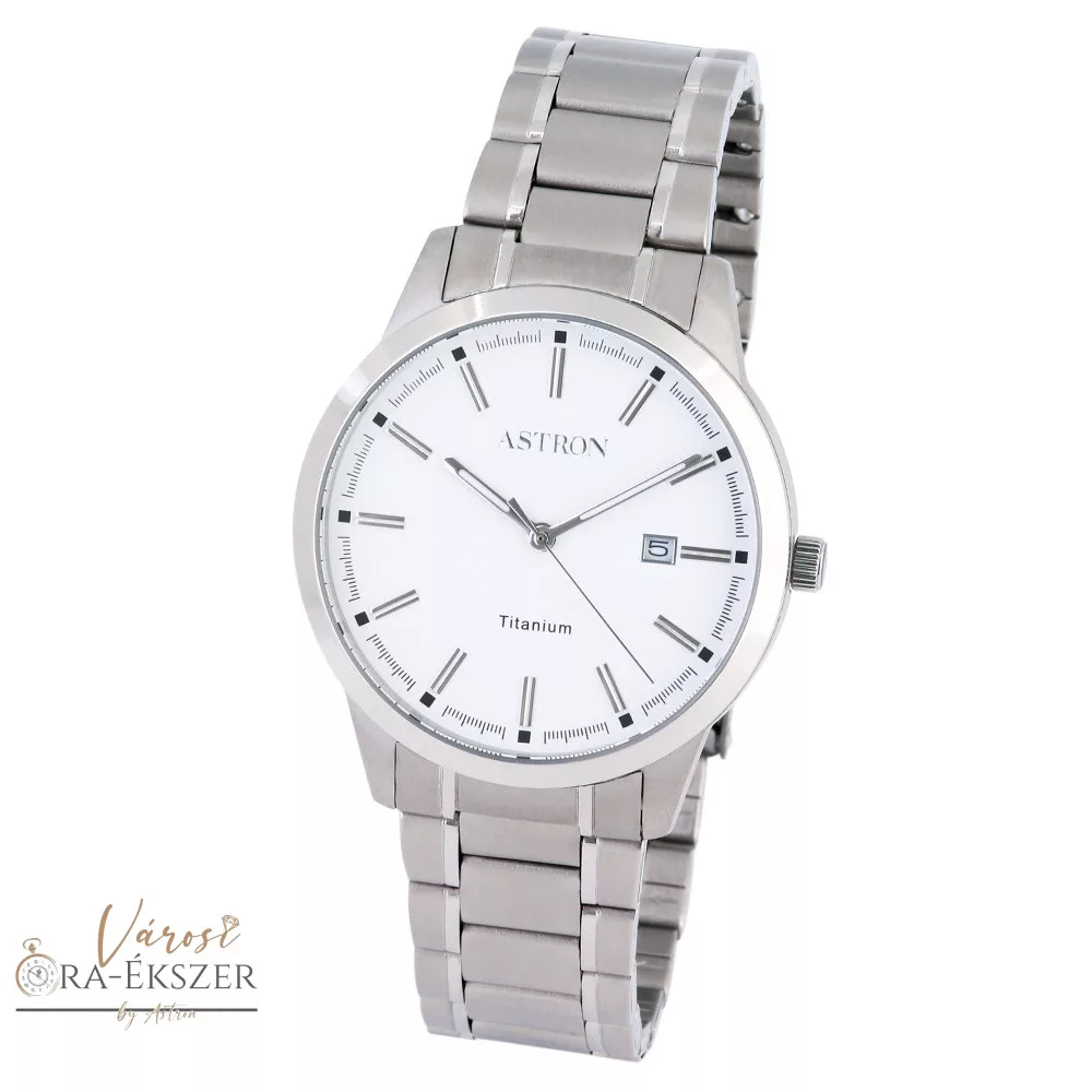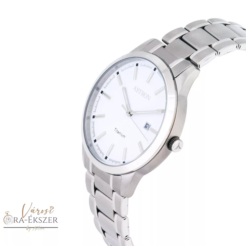 ASTRON 8042-7 férfi karóra, ezüst színű titánium tok, titánium csat, fehér számlap, keményített ásványüveg, quartz szerkezet, 50 m (5 ATM) vízállóság