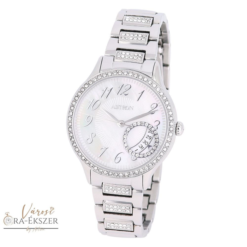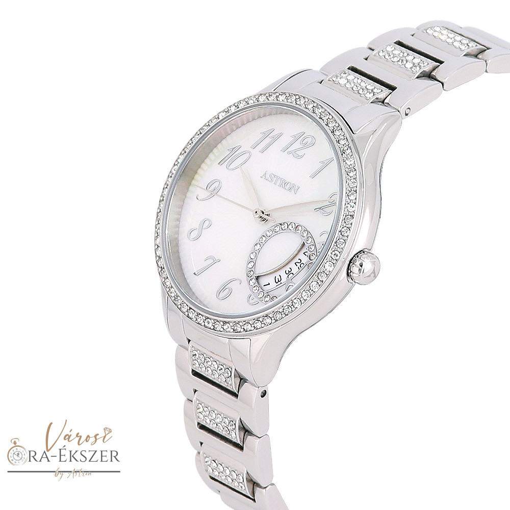 ASTRON 8054-7 női karóra, ezüst színű nemesacél tok és csat, fehér / gyöngyház színű számlap, keményített ásványüveg, quartz szerkezet, 50 m (5 ATM) vízállóság