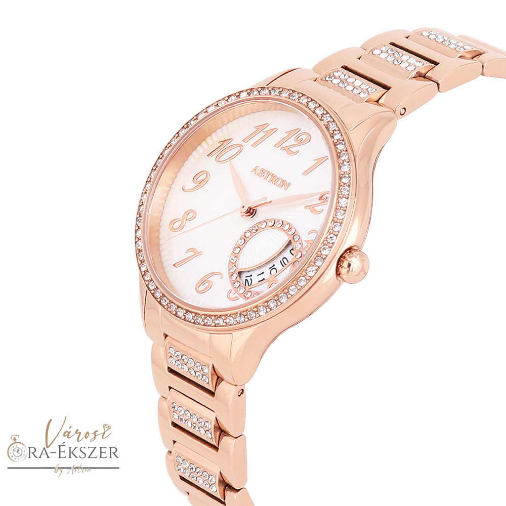 ASTRON 8054-8 női karóra, rózsaarany színű nemesacél tok és csat, fehér / gyöngyház színű számlap, keményített ásványüveg, quartz szerkezet, 50 m (5 ATM) vízállóság