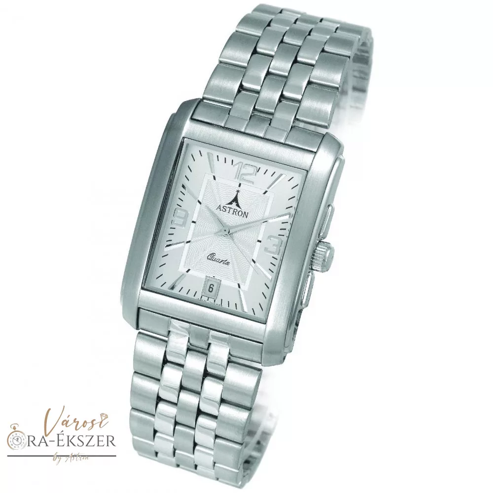 ASTRON 5029-7 férfi karóra, ezüst színű nemesacél tok, ezüst színű nemesacél csat, fehér számlap, keményített ásványüveg, quartz szerkezet, cseppmentes vízállóság