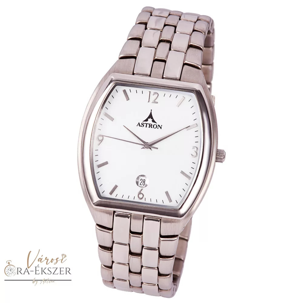 ASTRON 5068-7 klasszikus férfi karóra, ezüst színű nemesacél tok, ezüst színű nemesacél csat, arab számos fehér számlap, keményített ásványüveg, quartz szerkezet, cseppmentes vízállóság