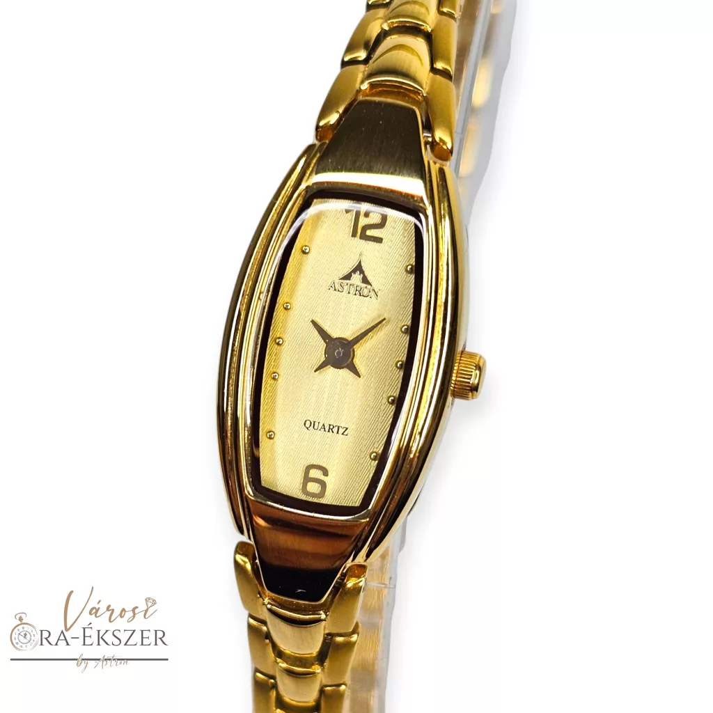 ASTRON 5087-9 női karóra, arany színű nemesacél tok, arany színű fémcsat, arany színű számlap, keményített ásványüveg, quartz szerkezet, cseppmentes vízállóság